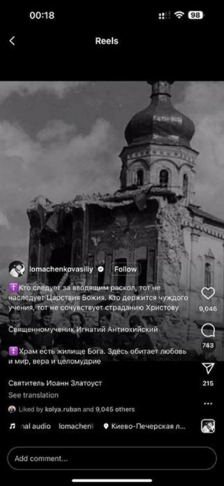 Очередной пост Василия сложно не назвать скандальным. Ломаченко снова опубликовал видео, связанное с УПЦ МП.