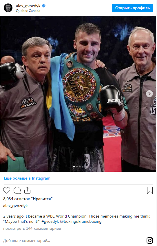 "2 года назад я стал чемпионом мира по версии WBC. Эти воспоминания заставляют меня задуматься: "Может быть, это еще не все?", - написал Гвоздик в Instagram.