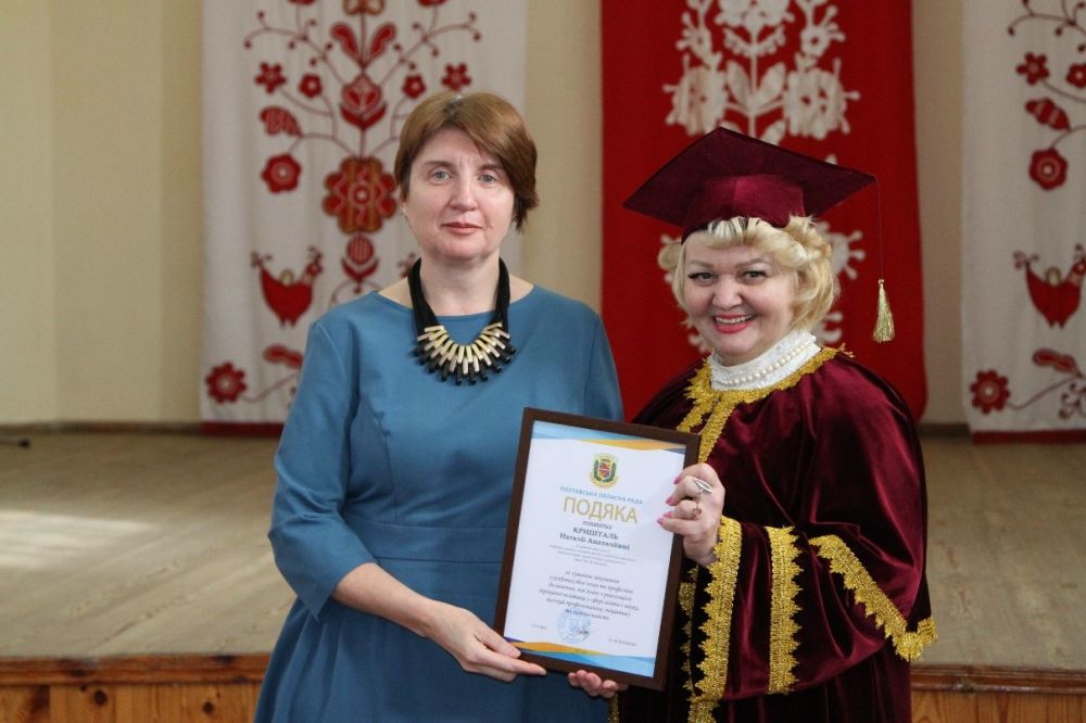 Подякою Полтавської обласної ради за сумлінне виконання службових обов’язків та професійні досягнення, пов’язані з реалізацією державної політики у сфері освіти і науки, високий професіоналізм, ініціативу та наполегливість нагороджені: старша викладачка кафедри романо-германської філології Наталія Кришталь, старша викладачка кафедри спеціальної освіти і соціальної роботи Ольга Губарь, доцентка кафедри загальної фізики і математики Любов Черкаська.