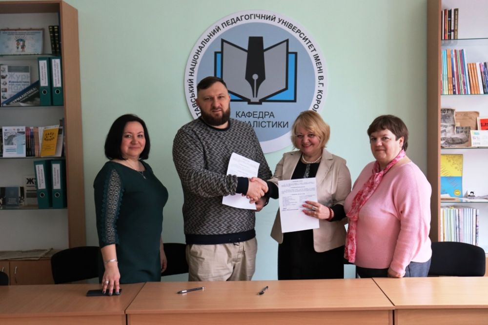 Полтавський національний педагогічний університет імені В. Г. Короленка та «Полтавське телебачення (“PTV”)» уклали Меморандум про співпрацю. Документ підписали ректорка університету професорка Марина Гриньова і директор компанії Богдан Зв’ягольський. Співробітництво між закладом вищої освіти й телевізійним мовником передбачає поширення інноваційного досвіду, забезпечення інтелектуального розвитку громадян, організацію спільних медіазаходів, реалізацію здібностей студентської молоді, популяризацію журналістського фаху та підготовку майбутніх медійників до професійної діяльності. На «PTV» проходять навчальні й виробничі практики студенти, які опановують спеціальність 061 Журналістика, і вже працюють випускники педагогічного університету. Також на студії відбуваються ознайомчі екскурсії для короленківців.