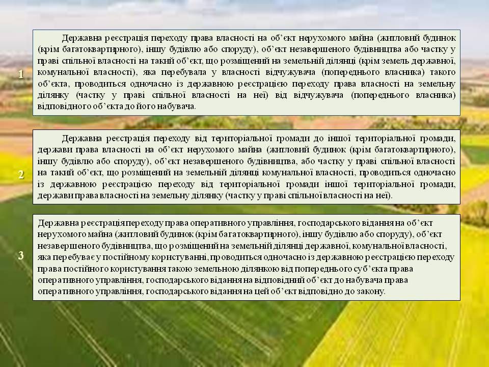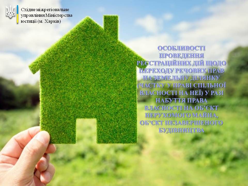 Особливості проведення реєстраційних дій щодо переходу речових прав на земельну ділянку (частку у праві спільної власності на неї) у разі набуття права власності на об’єкт нерухомого майна, об’єкт незавершеного будівництва