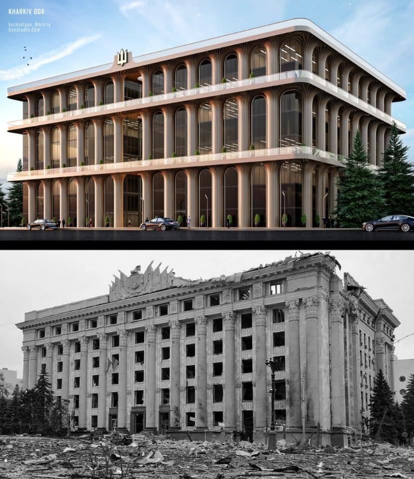 🔥Архітектор Дмитро Кузнецов представив концепт нової будівлі Харківської ОДА, яку рашисти розбомбили ще взимку