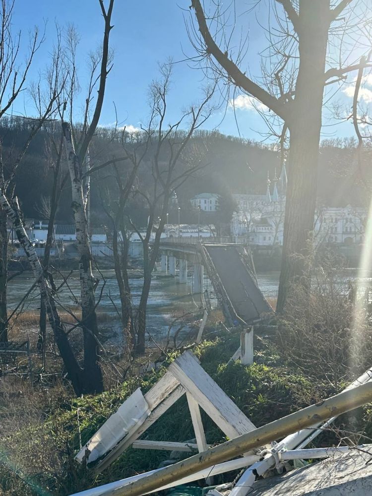 Міст через Сіверський Донець, який веде з міста до села Тетянівка та Святогірської Лаври - повністю зруйнований внаслідок бойових дій.