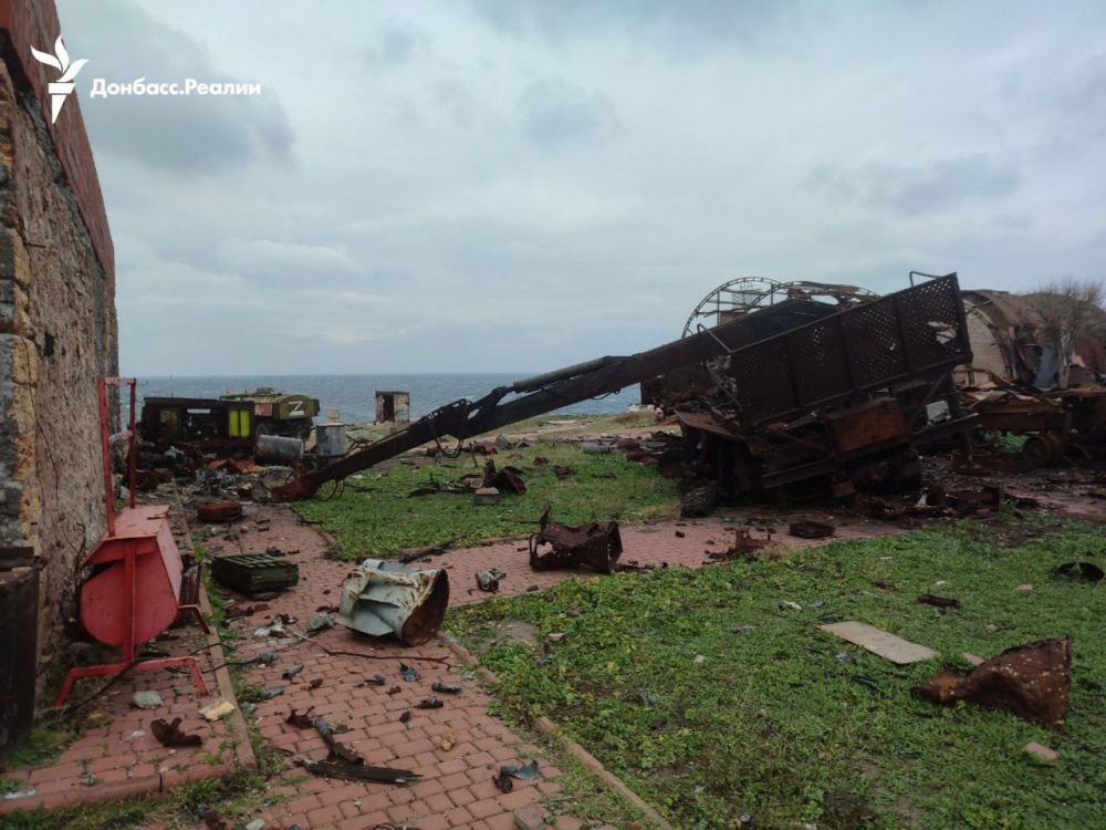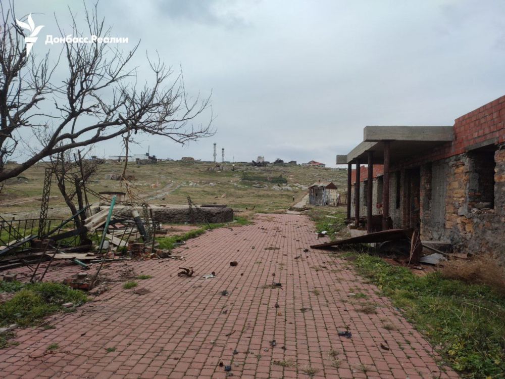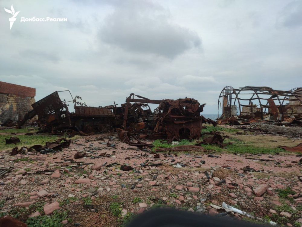 Будівлі на острові в основному зруйновані, багато знищеної російської техніки, серед якої системи ППО Панцир С1 (щонайменше 3), комплекс ППО Тор, паливозаправники. Залишились і боєприпаси.
