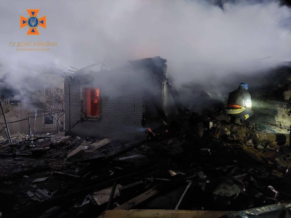 "Вночі 9 квітня ворог здійснив ракетний обстріл міста Запоріжжя. В результаті якого сталося часткове руйнування житлового будинку з подальшим загорянням на площі 100 кв. м, вибуховою хвилею частково пошкоджені сусідні будинки і вікна у поряд розташованих будівлях", - повідомляє ГУ ДСНС у Запорізькій області.