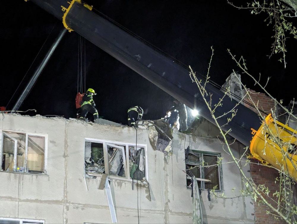 Тривають аварійно-рятувальні роботи на місці частково зруйнованого 5-поверхового житлового будинку. На місці події всього постраждало 6 осіб, з них 4 людини загинули, рятувальниками врятовано 2 особи, серед яких 1 дитина (14 років). Під завалами можливе перебування попередньо ще 5 осіб.
