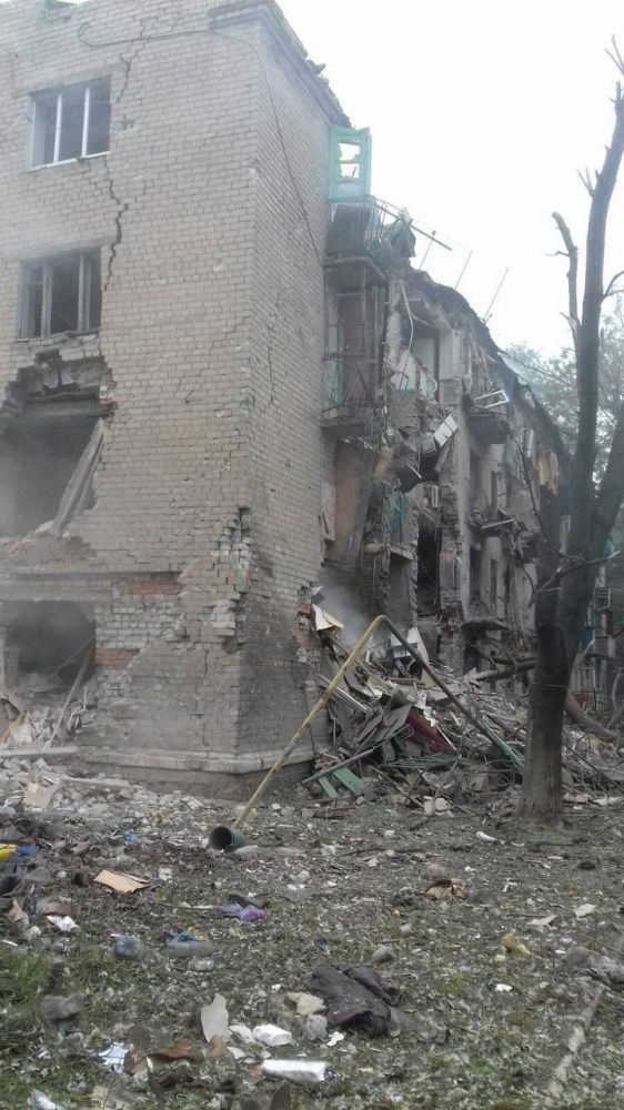 Очільник Донецької ОВА повідомив, що поранення отримало двоє людей. Також понівечено Будинок культури та житлові багатоповерхівки.